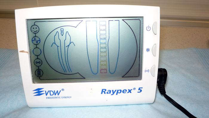 Endometr umożliwia elektroniczny pomiar długości kanałów i odległości od wierzchołka korzenia podczas leczenia kanałów korzeniowych. Mając do dyspozycji to urządzenie możemy ograniczyc ilość wykonywania dodatkowych zdjęć rtg i przeprowadzić z pełnym sukcesem leczenie kanałowe nawet najtrudniejszych przypadków.